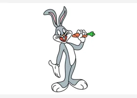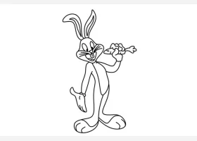 关于卡通、兔八哥的简笔画,兔八哥吃萝卜简笔画画法步骤。