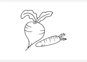 关于蔬菜、萝卜的简笔画,简单的萝卜简笔画画法步骤。