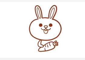 关于卡通、小兔子的简笔画,抱着胡萝卜的小兔子简笔画画法。