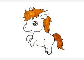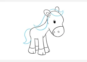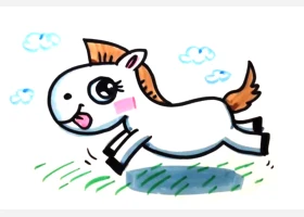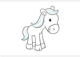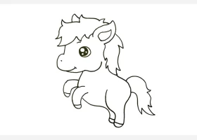 关于动物、小马的简笔画,一匹可爱的小马简笔画步骤。