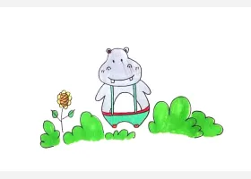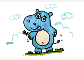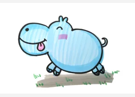 关于卡通、河马的简笔画,可爱的卡通河马简笔画步骤。