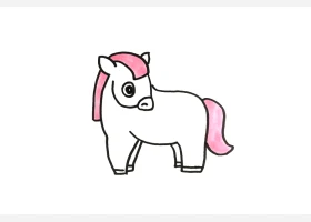 关于动物、小马的简笔画,如何画粉色的小马卡通简笔画。