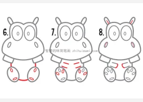 关于卡通、河马宝宝的简笔画,一步一步学画可爱的河马简笔画。