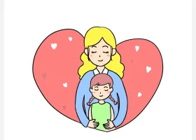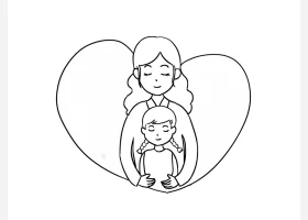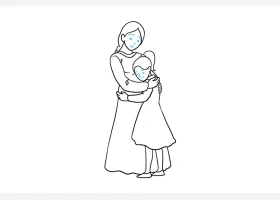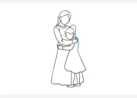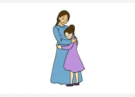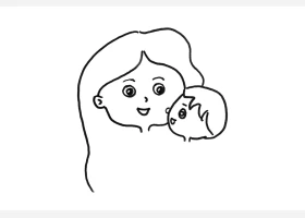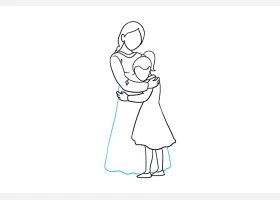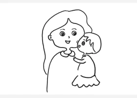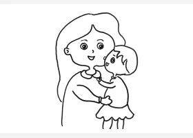关于人物、母亲抱女儿的简笔画,母亲拥抱女儿简笔画步骤。