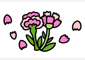 关于花朵、康乃馨的简笔画,母亲节的花,康乃馨简笔画画法步骤。