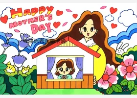 关于节日、母亲节贺卡怎么画的简笔画,母亲节画一张贺卡送给妈妈简笔画步骤。