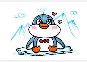 关于海洋生物、企鹅的简笔画,如何画可爱的小企鹅简笔画教程步骤。