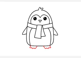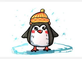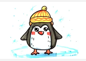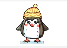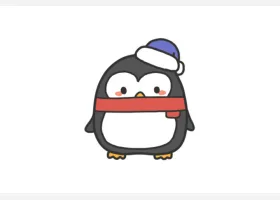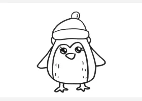 关于动物、企鹅的简笔画,戴帽子的小企鹅简笔画步骤。