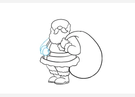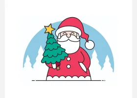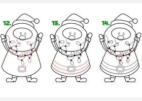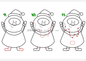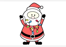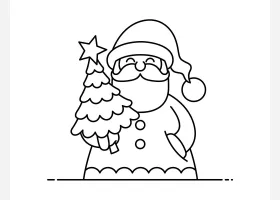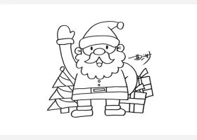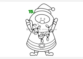 关于节日、圣诞老人的简笔画,如何画举着圣诞彩灯的圣诞老人简笔画。