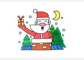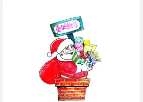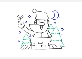 关于节日、圣诞老人的简笔画,爬烟囱的圣诞老人怎么画。