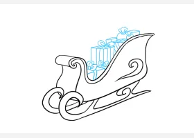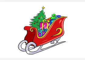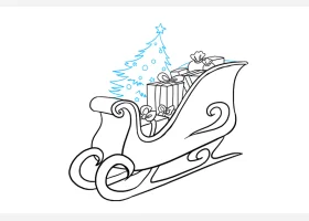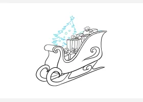 关于节日、圣诞雪橇图片的简笔画,圣诞老人的雪橇简笔画步骤。