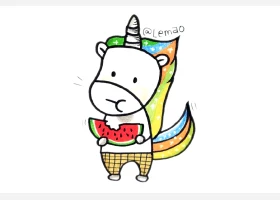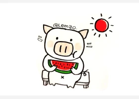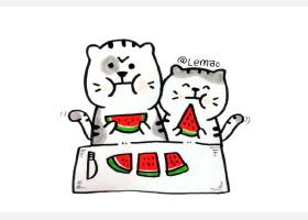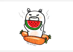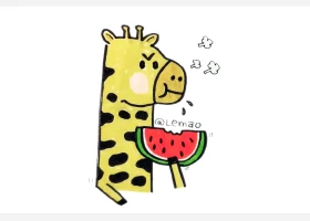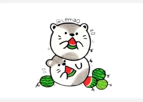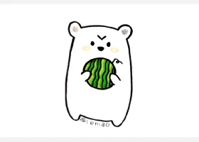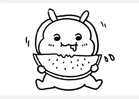 关于动物、动物的简笔画,一组吃西瓜的小动物简笔画图片。