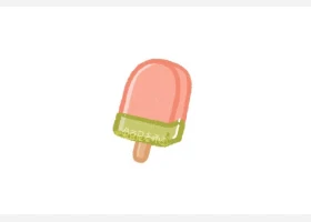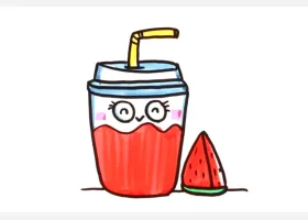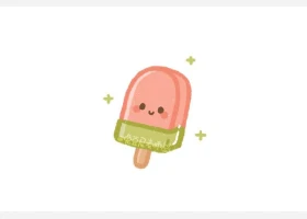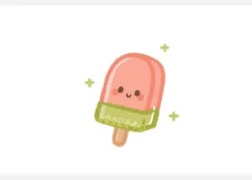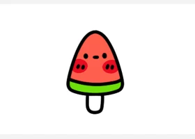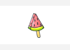 关于食物、棒冰的简笔画,简单又可爱的西瓜棒冰简笔画画法。
