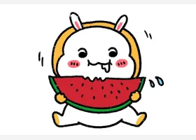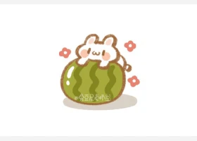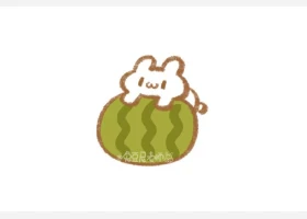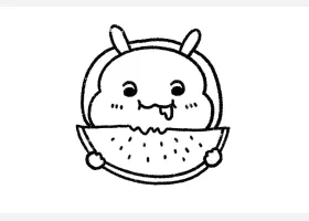 关于可爱、西瓜小兔的简笔画,趴西瓜上的小兔简笔画步骤。