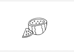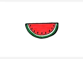 关于水果、西瓜的简笔画,一块简单的西瓜简笔画画法教程。