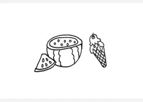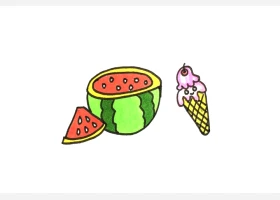 关于食物、西瓜的简笔画,夏天的标配食物,简单的西瓜和冰激凌简笔画画法。