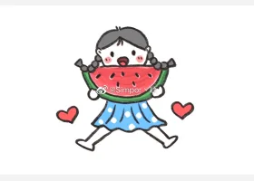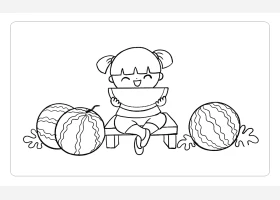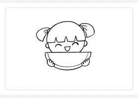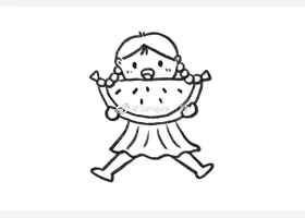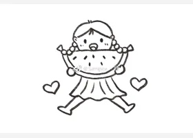 关于人物、小女孩的简笔画,吃西瓜的小女孩简笔画教程。