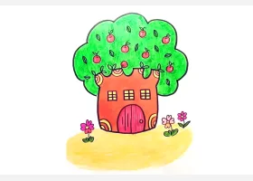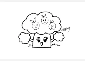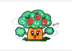关于植物、苹果树的简笔画,卡通苹果树简笔画画法步骤。