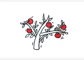 关于植物、苹果树的简笔画,漂亮的苹果树简笔画步骤。