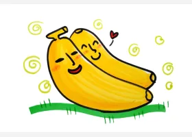 关于水果、香蕉的简笔画,可爱的卡通香蕉简笔画图片。