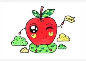 关于卡通、苹果的简笔画,可爱的卡通苹果简笔画步骤。