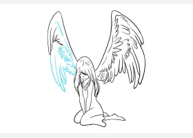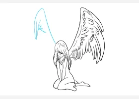 关于动漫、天使的简笔画,堕落的天使简笔画教程步骤。