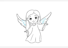 关于人物、天使的简笔画,漂亮可爱的天使简笔画教程步骤。