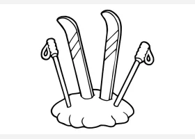 关于体育运动、体育用品的简笔画,滑雪运动员用品简笔画图片。
