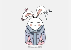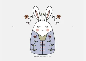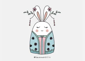 关于动物、兔子的简笔画,一组穿古风兔子简笔画图片。