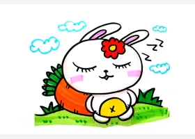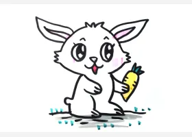 关于动物、小兔子的简笔画,拔萝卜的小兔子简笔画教程。