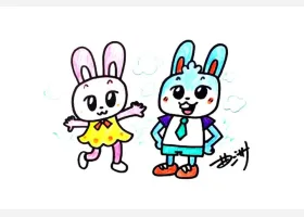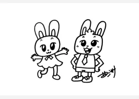 关于动物、小兔子的简笔画,两只可爱的小兔子简笔画画法教程。