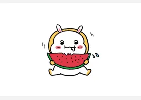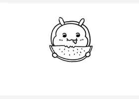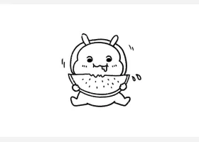 关于动物、小兔子的简笔画,吃西瓜的小兔子简笔画教程。