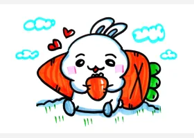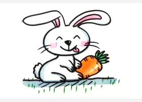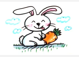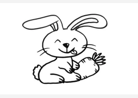 关于兔子、小兔子的简笔画,可爱的小兔子吃萝卜简笔画画法。