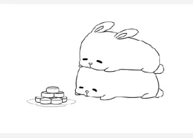 关于节日、兔子的简笔画,想偷吃月饼的兔子简笔画画法教程。