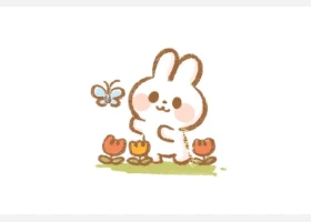 关于可爱、小兔子的简笔画,追蝴蝶的小兔子简笔画步骤。