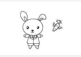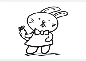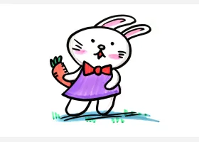 关于卡通、兔子的简笔画,拿着胡萝卜的卡通小兔子简笔画步骤。
