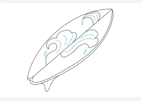 关于体育运动、冲浪板的简笔画,简单漂亮的冲浪板简笔画教程。