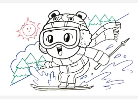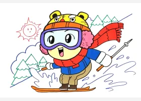 关于体育运动、滑雪的简笔画,可爱的滑雪的小人简笔画步骤。
