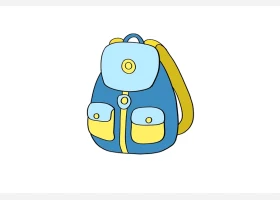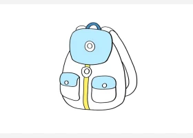 关于文具、书包的简笔画,漂亮的蓝色书包简笔画画法步骤。