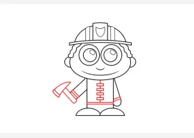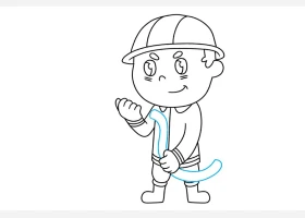 关于人物、消防员的简笔画,卡通版消防员简笔画画法。