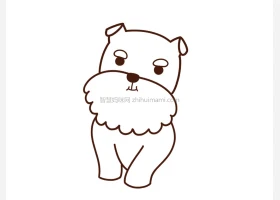 关于小狗、雪纳瑞的简笔画,可爱的雪纳瑞小狗简笔画画法步骤。