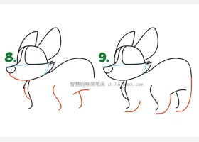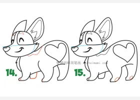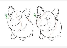 关于小狗、柯基的简笔画,可爱的柯基宝宝简笔画画法步骤。