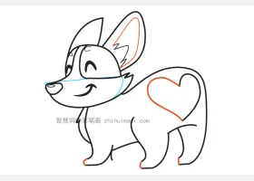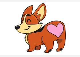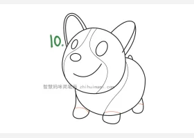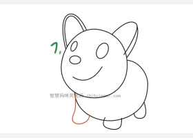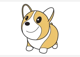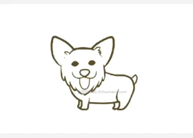 关于小狗、柯基的简笔画,可爱的短腿柯基简笔画画法步骤。