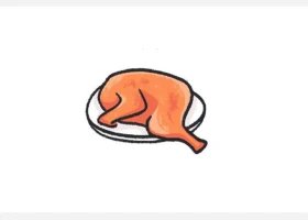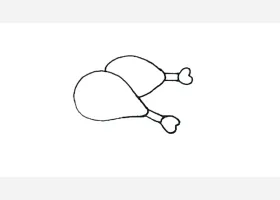 关于食物、烤鸡的简笔画,宵夜时刻,烤鸡腿简笔画步骤。