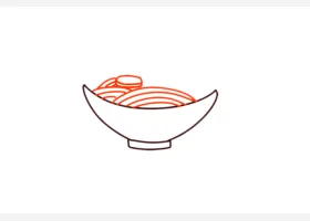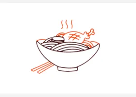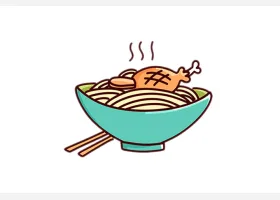 关于食物、鸡腿面的简笔画,一碗香喷喷的鸡腿面简笔画画法。