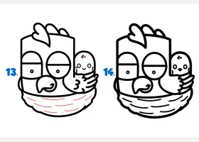 关于卡通、母鸡的简笔画,如何用“hen”字母画卡通母鸡简笔画步骤。