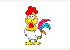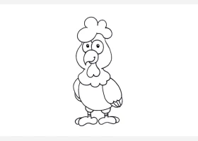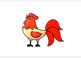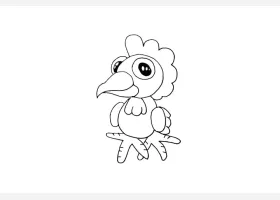 关于动物、公鸡的简笔画,可爱的公鸡卡通简笔画画法步骤。