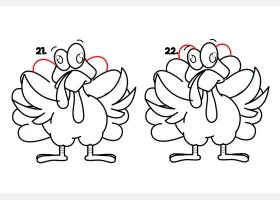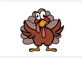 关于动物、火鸡的简笔画,漂亮的卡通火鸡简笔画步骤。