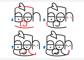 关于卡通、怪兽的简笔画,炸鸡怪兽卡通简笔画画法步骤。