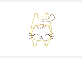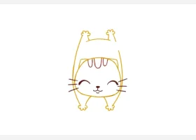 关于动物、小猫的简笔画,笑得满地打滚的小猫简笔画画法。